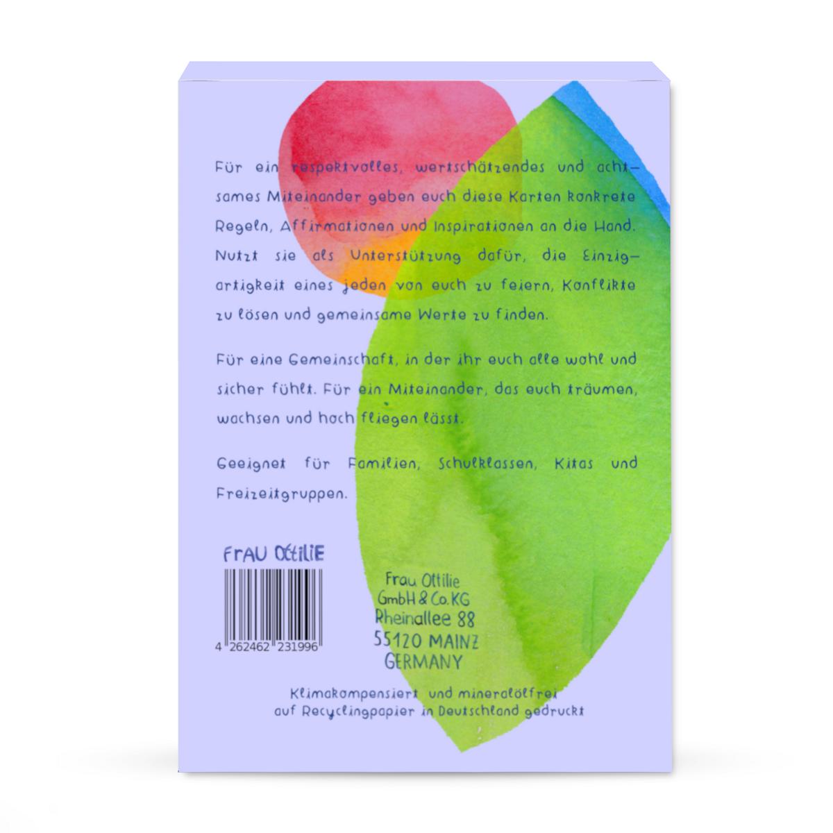 Karten für mehr Zusammenhalt, ohne den Einzelnen und sich selbst aus dem Blick zu verlieren. Mit Regeln für ein buntes, konstruktives, liebevolles Miteinander, Strategien zum Umgang mit Konflikten und mehr.