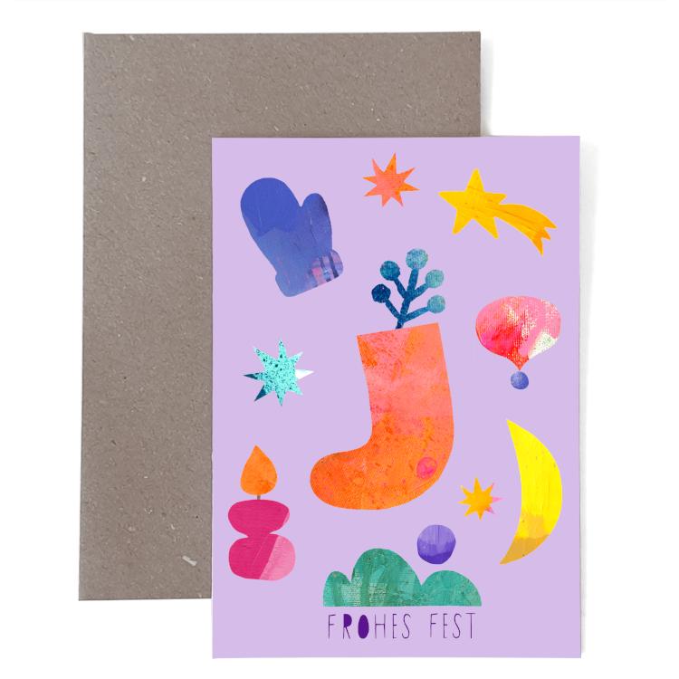 Weihnachtskarte *Frohes Fest* (Klappkarte, lila)